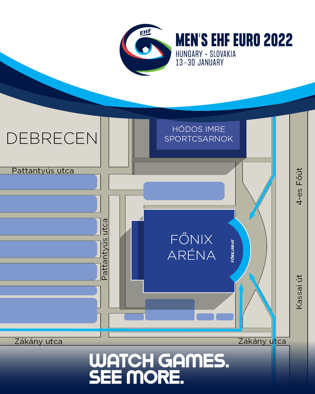 Közönségparkoló nem áll rendelkezésre, így kérjük, hogy a tömegközlekedési eszközök előnyben részesítését az aréna megközelítéséhez.