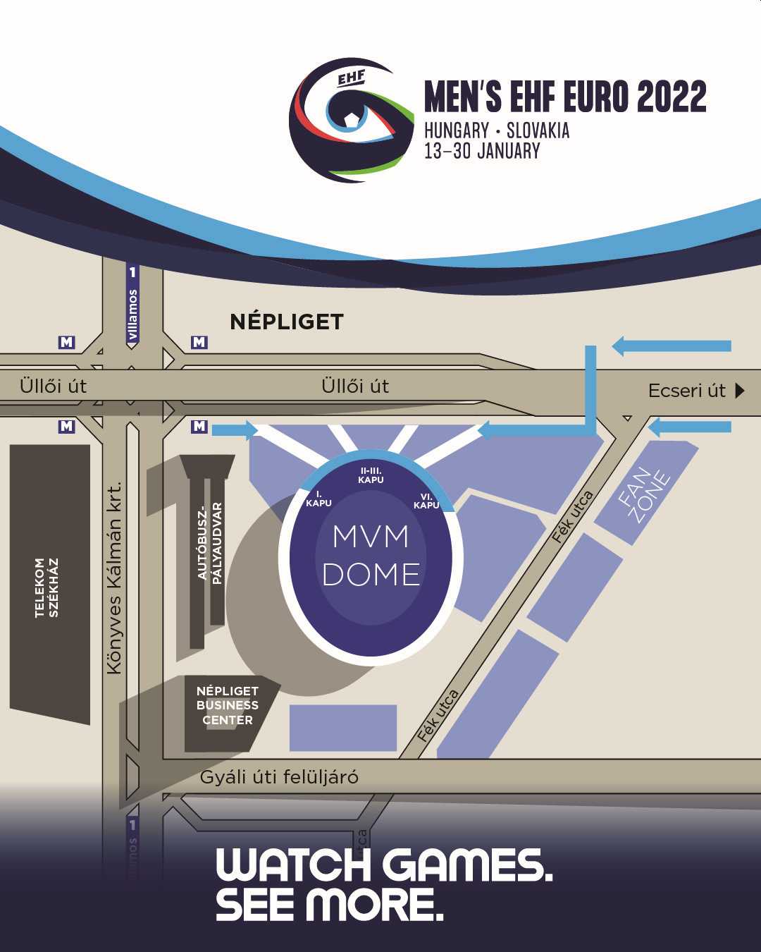 Mivel óriási az érdeklődés az Eb-mérkőzések, különösen a magyar válogatott találkozói iránt, minden szurkolót arra kérünk, hogy időben induljon el a mérkőzésekre, érdemes a karszalagot már a mérkőzés előtti napon felvenni a fennakadások elkerülése érdekében.